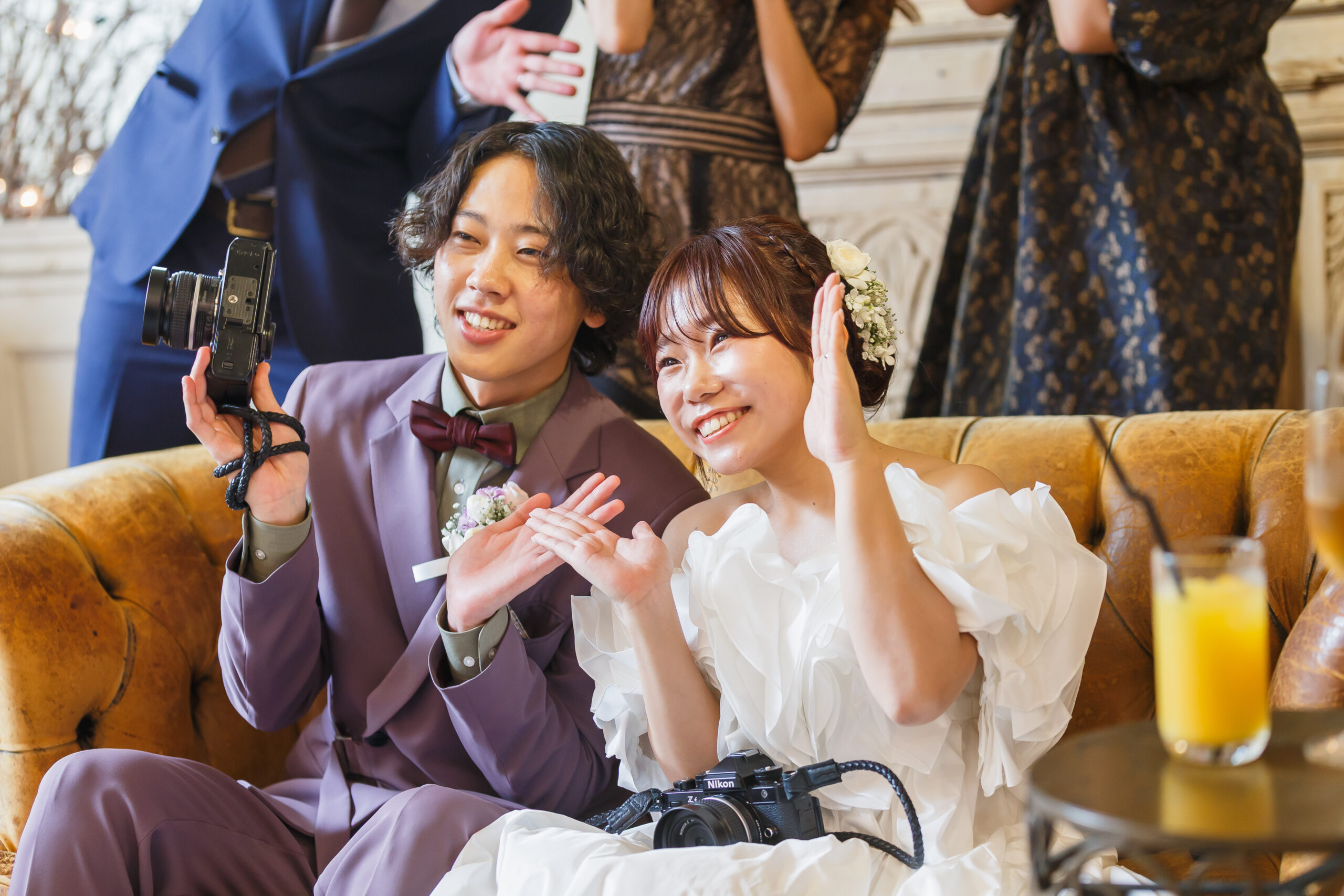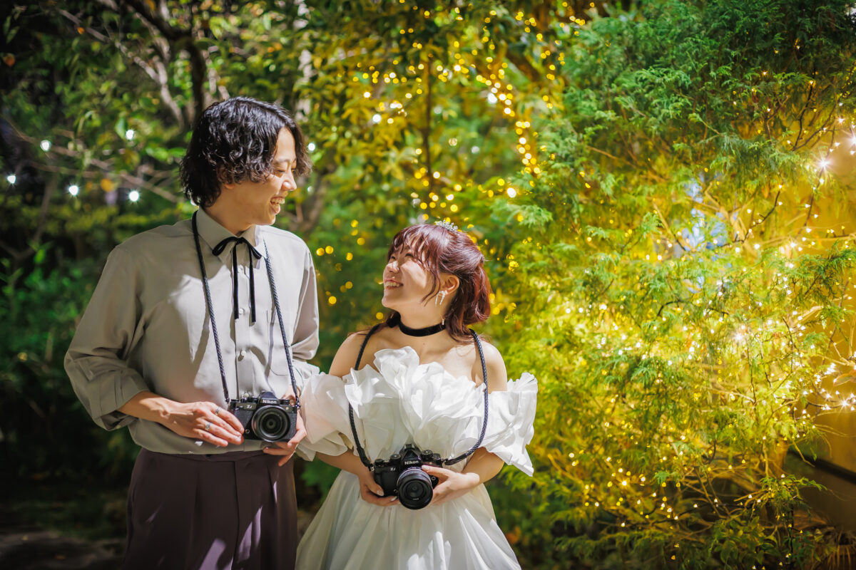 10月19日、秋の心地よい空気が広がる夜。 学生時代から友人として出会い、長い時間をともに過ごしてきたお二人が、大切なゲストに見守られなが ら結婚式当日を迎えました。 この日お二人が大切にしたのは、「ゲストに楽しんでもらうこと」、そして「一人ひとりとの時間を大切 にすること」。カメラが共通の趣味であるお二人らしく、会場にはたくさんの笑顔と、かけがえのない瞬 間があふれていました。